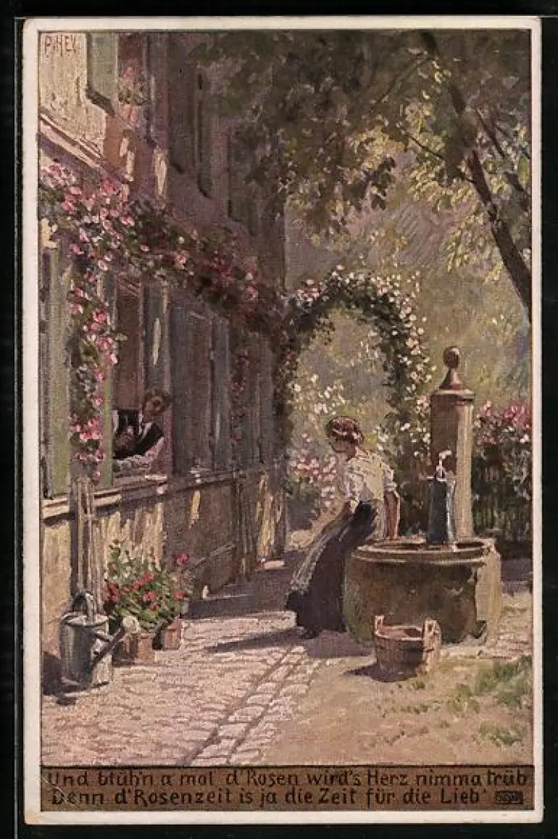 Künstler-AK P. Hey, Volksliederkarte Nr.: 48, Und blühen a mal die Rosen