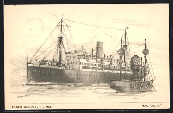 Künstler-AK Passagierschiff M. V. Adda in Fahrt