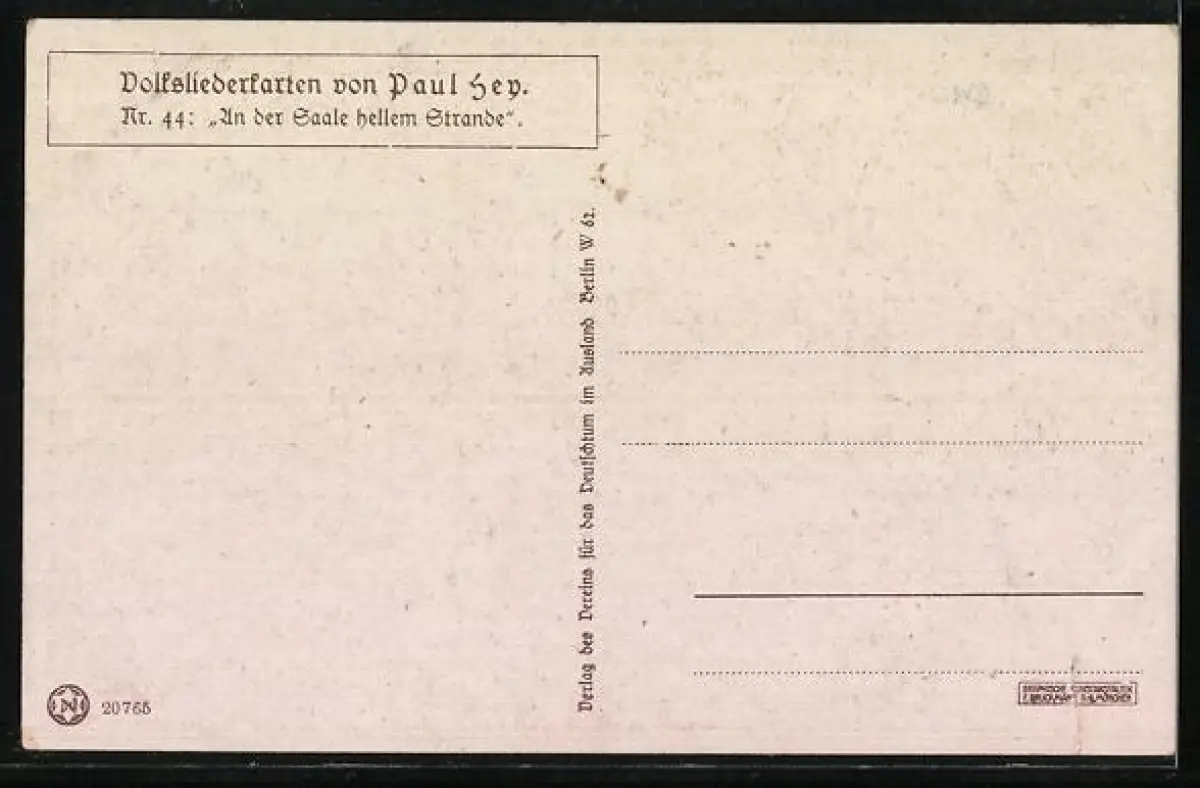 Künstler-AK Paul Hey: An der Saale hellem Strande, Pärchen geniesst den Ausblick, Verein für das Deutschtum im Ausland