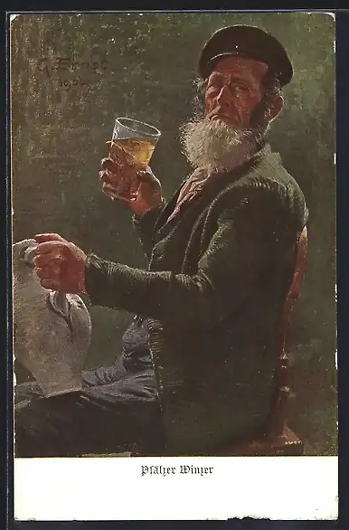 Künstler-AK Pfälzer Winzer bei der Wein-Verkostung