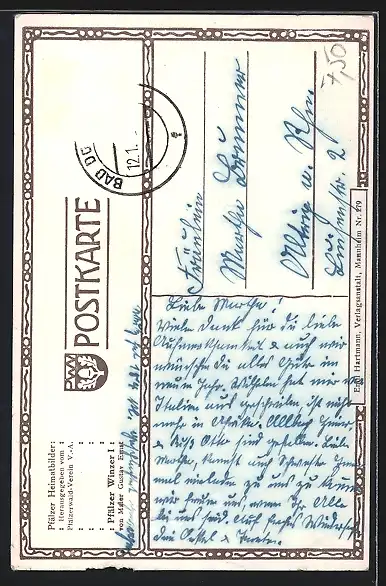 alte Ansichtskarte, gelaufen, Briefmarke entfernt, guter Zustand