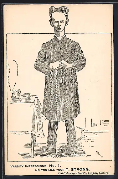 Künstler-AK Pfarrer T. Strong mit Tee
