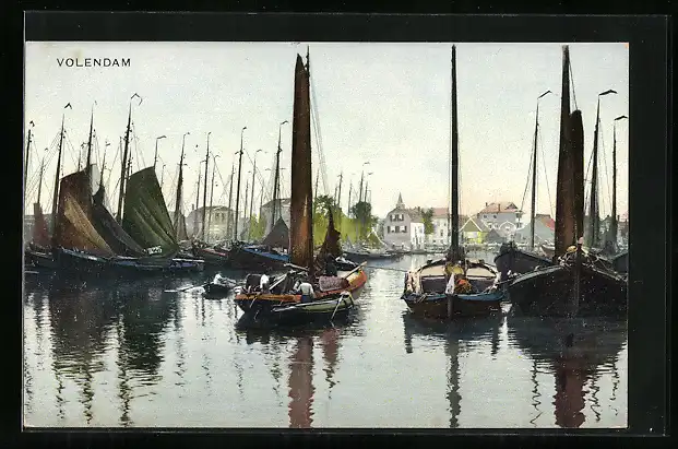 Künstler-AK Photochromie Nr. 1419: Volendam, kleine Segelboote liegen im Hafen