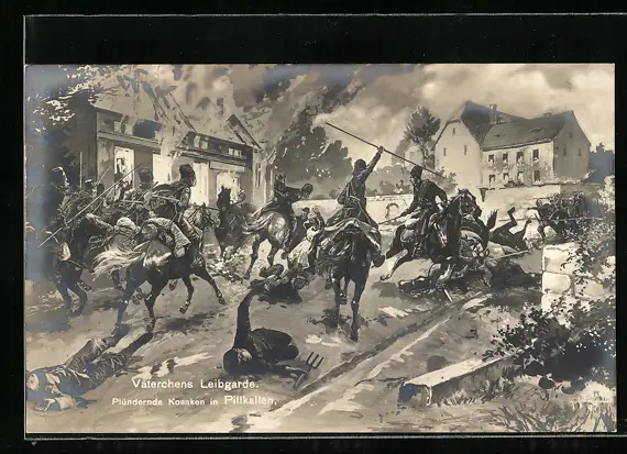 Künstler-AK Pillkallen, Väterchens Leibgarde, Plündernde Kosaken