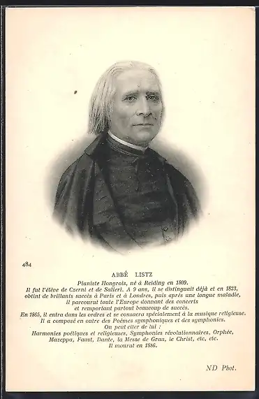 Künstler-AK Portrait Abbé Listz in schwarzer Kleidung
