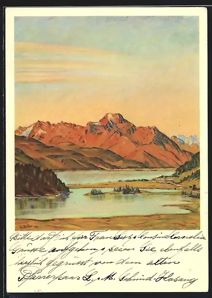 Künstler-AK Pro Juventute, Silvaplanersee mit Piz La Margna