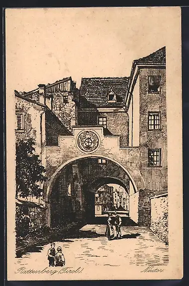 Künstler-AK Rattenberg /Tirol, Neutor mit Strasse