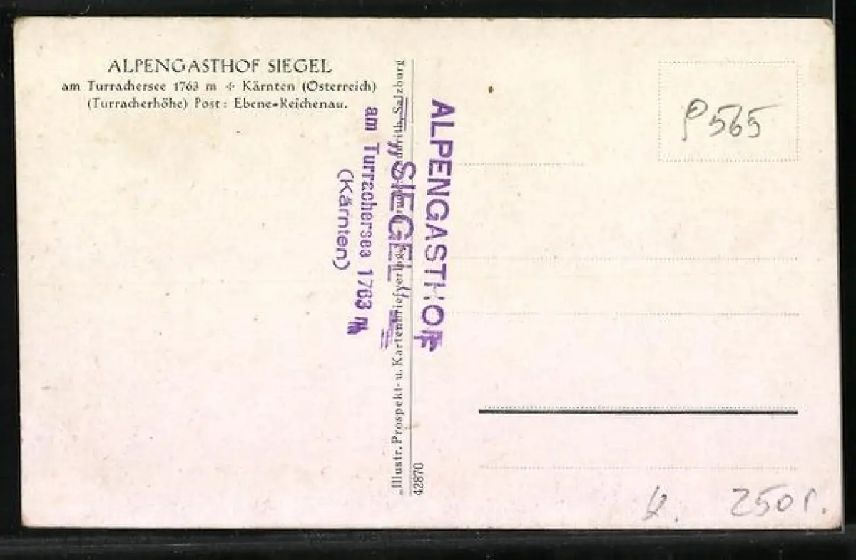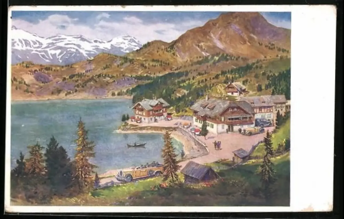 Künstler-AK Reichenau /Kärnten, Turrachersee, Ansicht mit Alpengasthof Siegel
