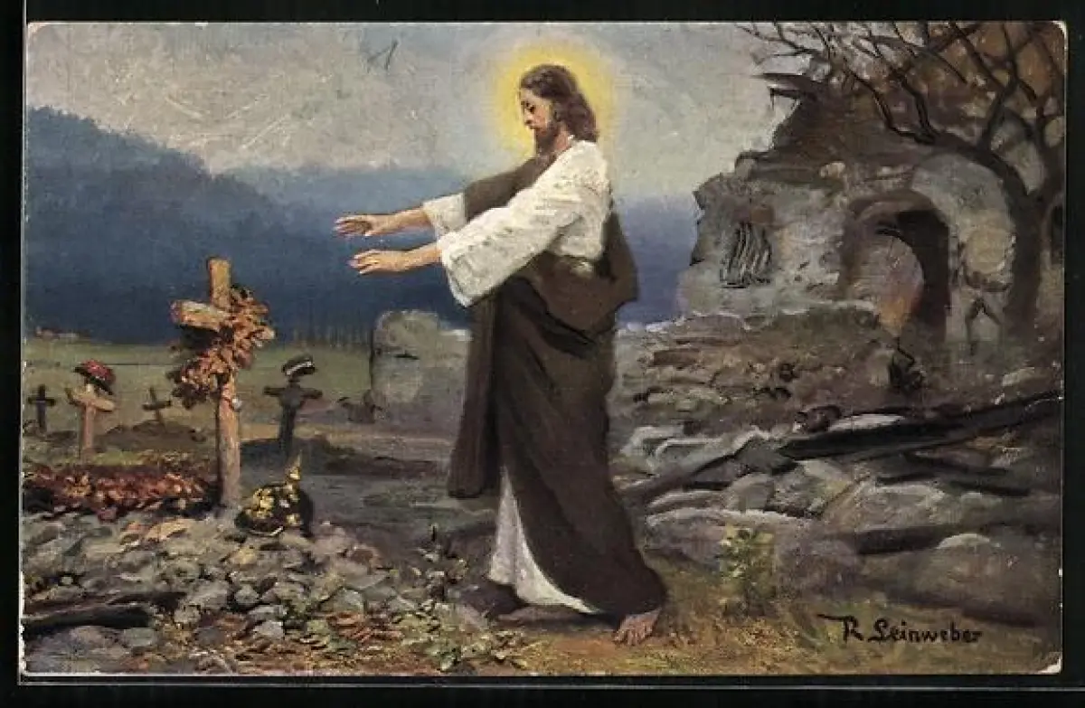 Künstler-AK Rob. Leinweber: Ruhet in Frieden, Der Herr segnet das Soldatengrab