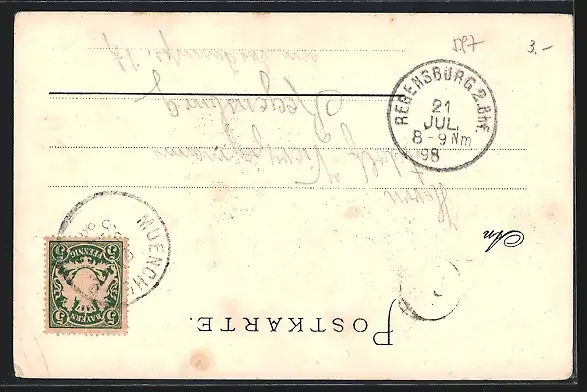 alte Ansichtskarte, gelaufen 1898, Eckknick unten re., guter Zustand
