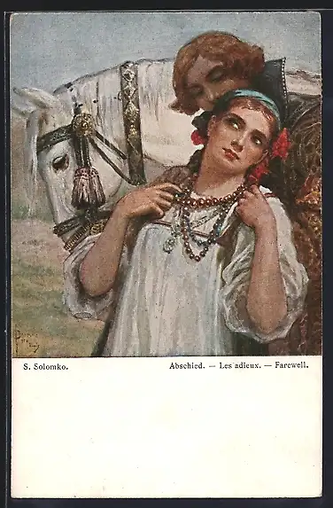 Künstler-AK S. Solomko: Abschied, Mann verabschiedet sich von seiner Liebsten