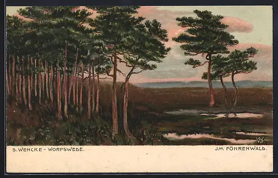 Künstler-AK S.Wencke: Landschaftspanorama am Föhrenwald