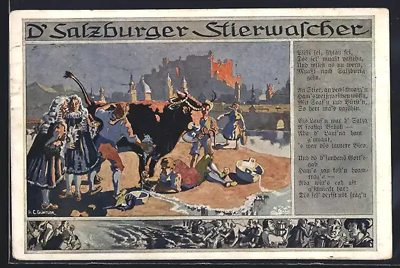 Künstler-AK Salzburg, D` Salzburger Stierwascher, Lied