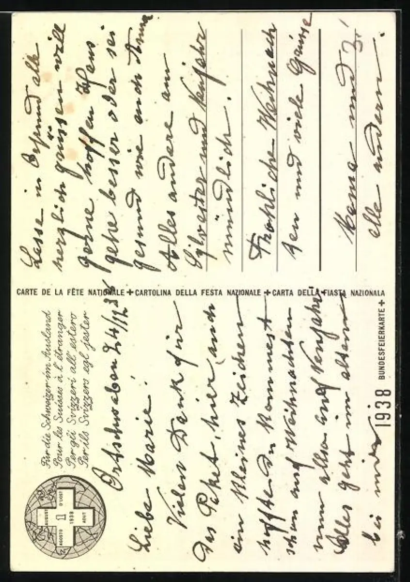 Künstler-AK Schweizer Bundesfeier 1938, Turm mit Schweizer Flagge