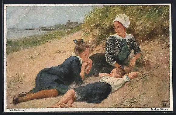 Künstler-AK Seeger: Mutter und Töchter in den Dünen