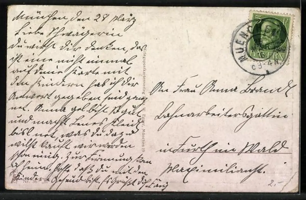 alte Ansichtskarte, gelaufen 1916, Eckknick li. unten, guter Zustand