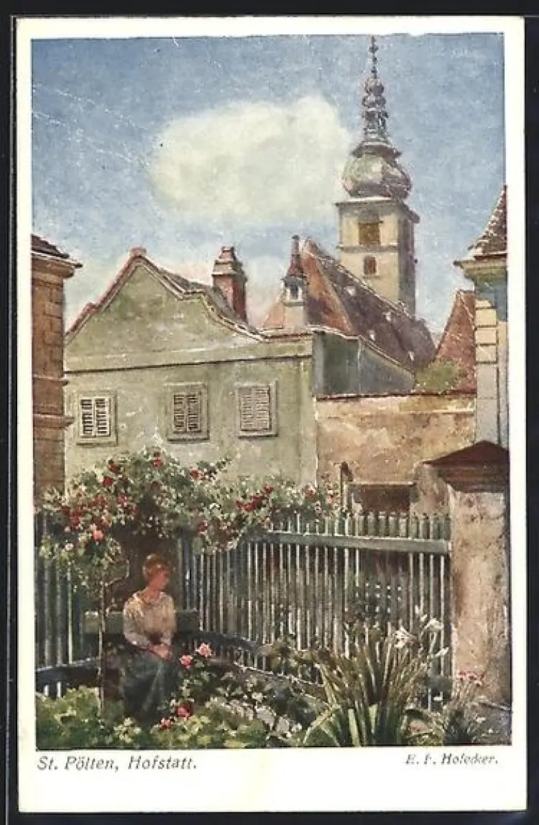 Künstler-AK St. Pölten, Hofstatt, Kirchturm