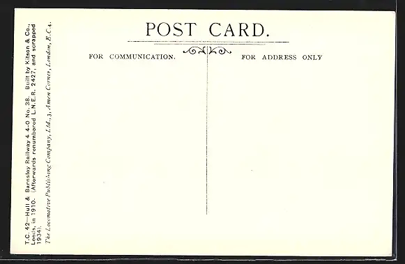Künstler-AK TC 42-Hull & Barnsley Railway, 4-4-0 Type engine no. 38