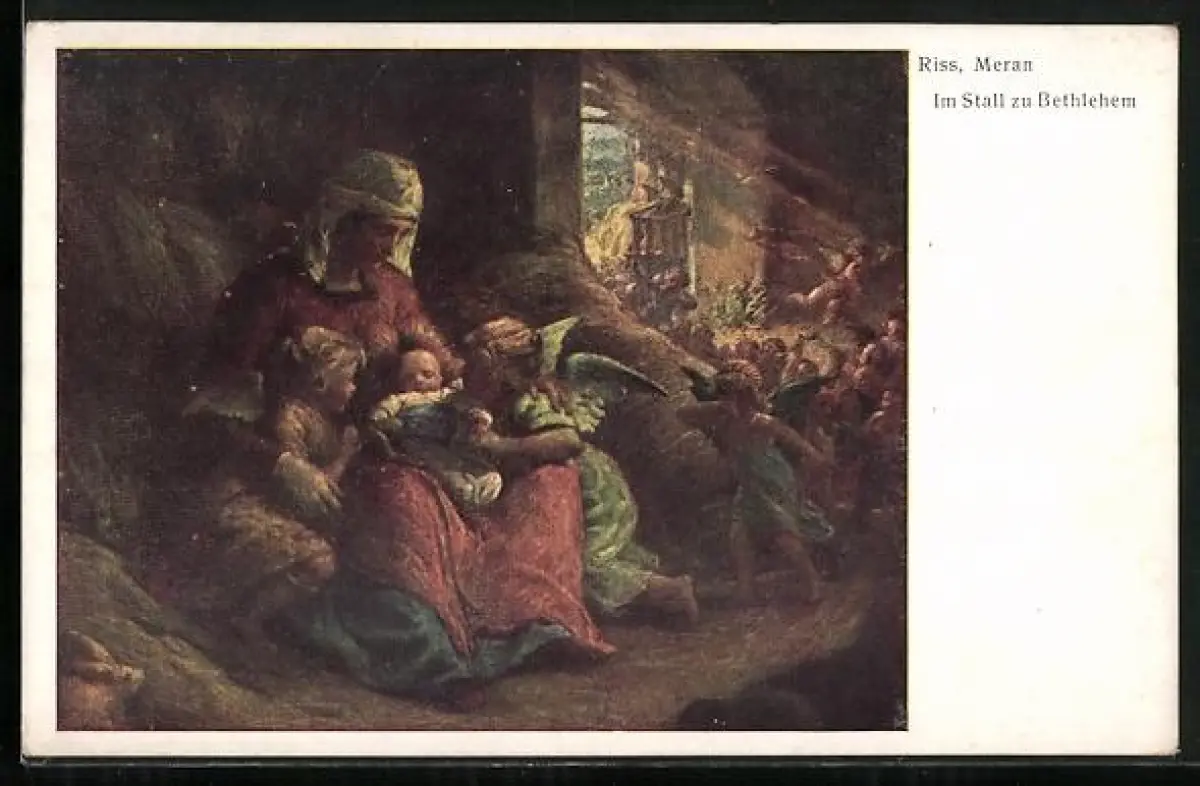 Künstler-AK Thomas Riss: Im Stall zu Bethlehem, Mutter mit ihren Kindern