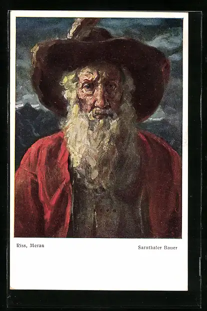 Künstler-AK Thomas Riss: alter Sarthaler Bauer m. langem Bart
