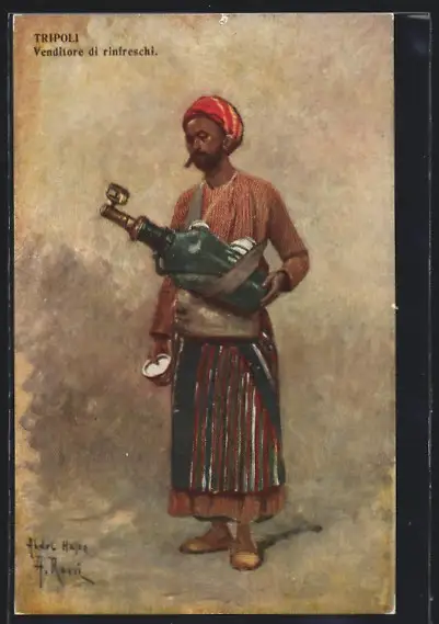 Künstler-AK Tripoli, Venditori di rinfreschi, Wasserverkäufer