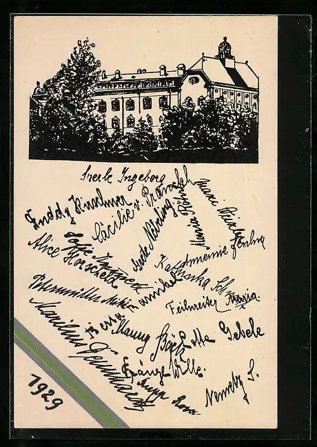 Künstler-AK Verbindungshaus, Couleur, Signaturen, Jahr 1929