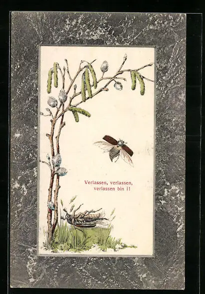 Künstler-AK Verlassener Maikäfer, auf dem Rücken liegend
