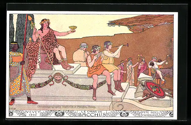 Künstler-AK Vevey, Le Char de Bacchus, Fete des Vignerons 1905