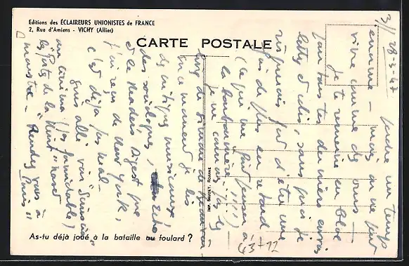 Künstler-AK Vichy, Rue d`Amiens, As-tu déjà joue à la bataille au toulard?