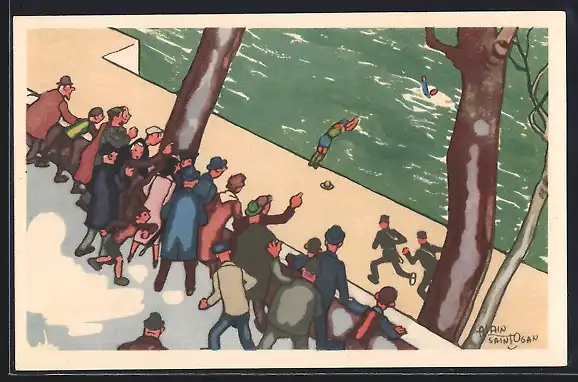 Künstler-AK Vichy, Rue d`Amiens, Saurais-tu, tol aussi sauver quelqu`un?