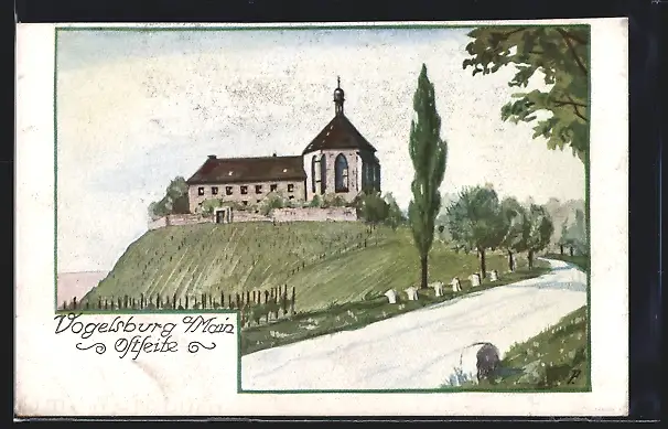Künstler-AK Vogelsburg a / Main, Ostleite mit Kirche