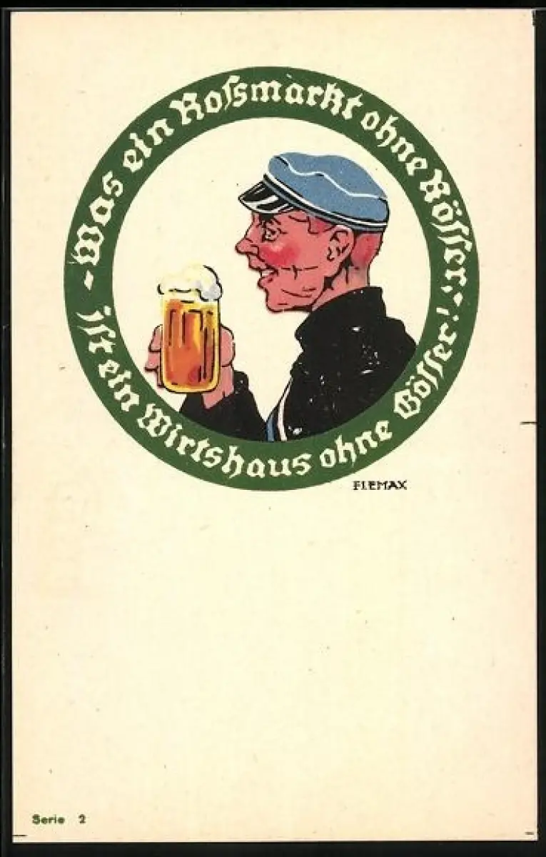 Künstler-AK Was ein Rossmarkt ohne Rösser ist ein Wirtshaus ohne Gösser!, Bursche mit Schmiss