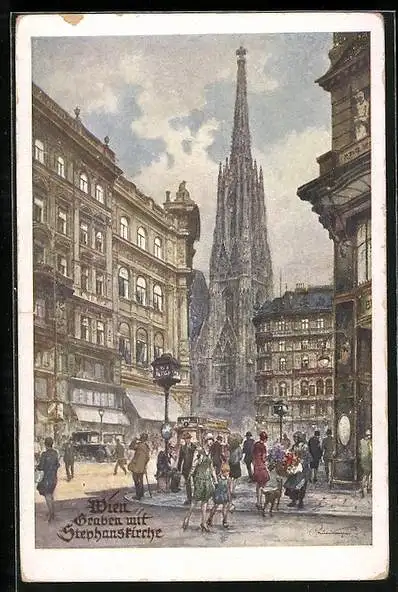 Künstler-AK Wien, Graben mit Stephanskirche