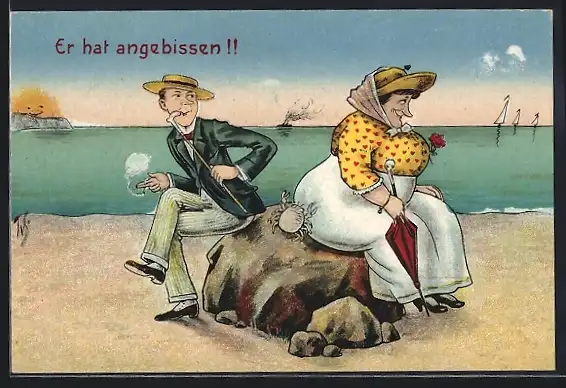 Künstler-AK Willi Scheuermann: Frau verwechselt den Kniff eines Krebses mit der interessierten Geste eines Mannes