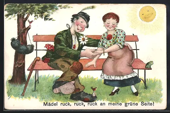 Künstler-AK Willi Scheuermann: Pärchen sitzt auf einer Bank