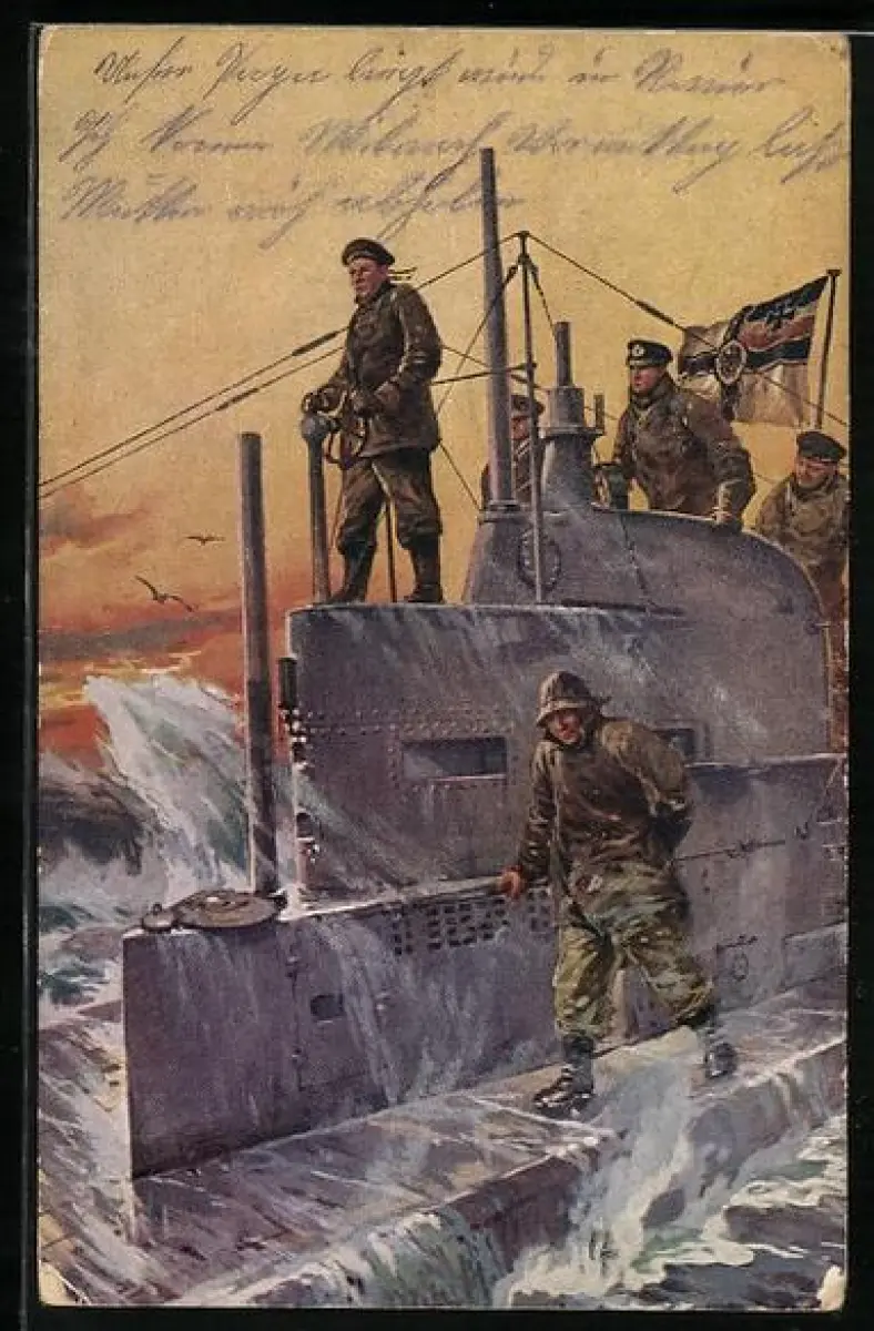 Künstler-AK Willy Stoewer: Auf dem Kommandoturm eines Unterseebootes