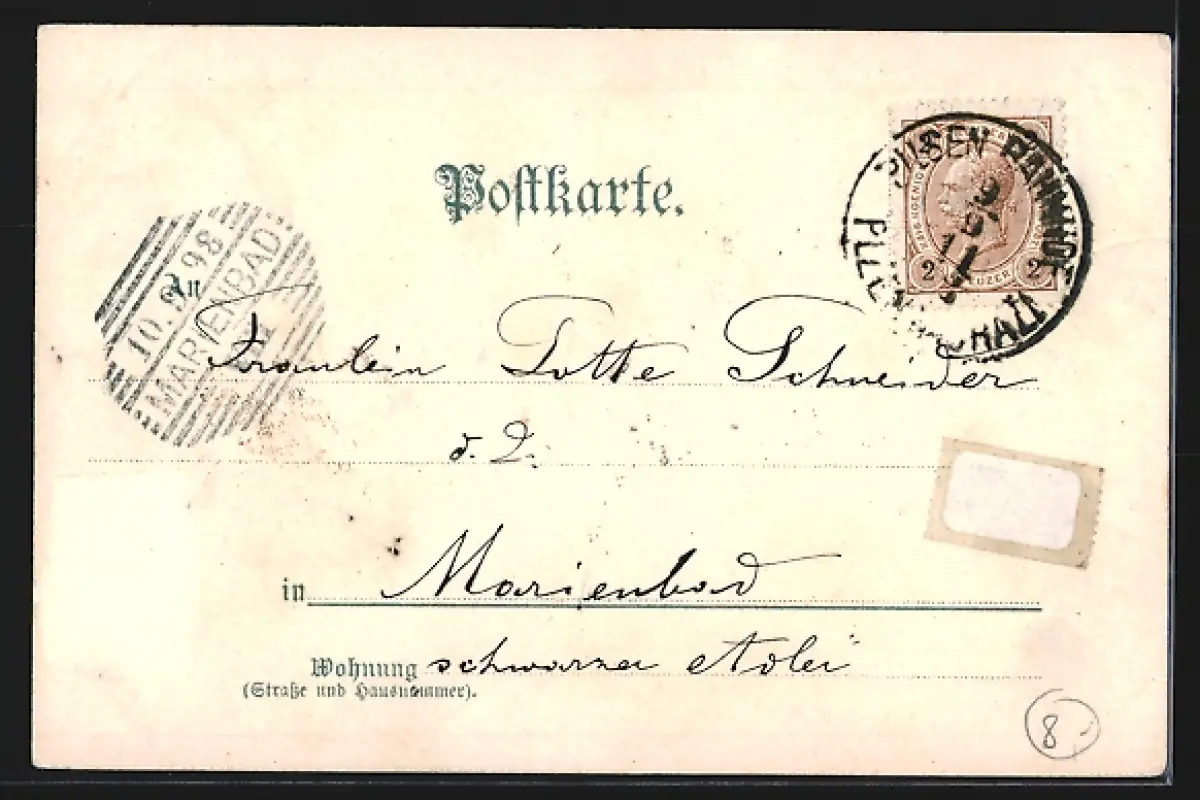 gelaufen 1898, rückseitig Klebe- und Papierreste, guter Zustand