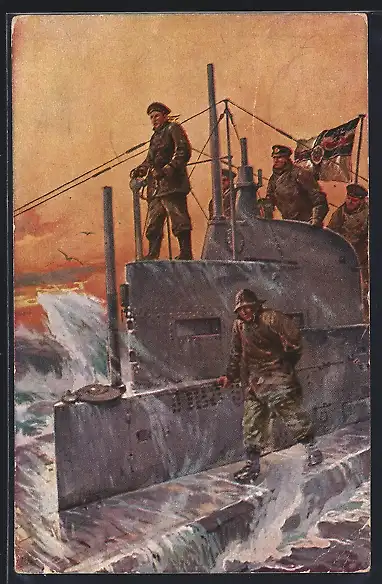 Künstler-AK Willy Stoewer: auf dem Kommandoturm eines U-Bootes