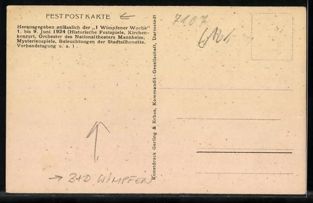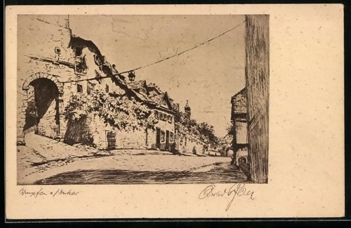 Künstler-AK Wimpfen, Blick in eine Strasse des Ortes