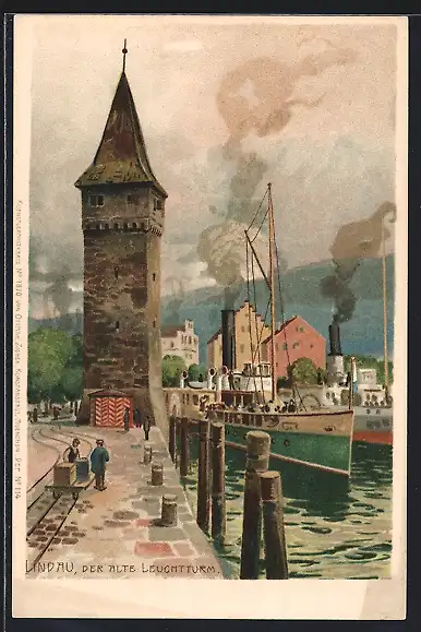 Künstler-AK Zeno Diemer: Lindau / Bodensee, am alten Leuchtturm