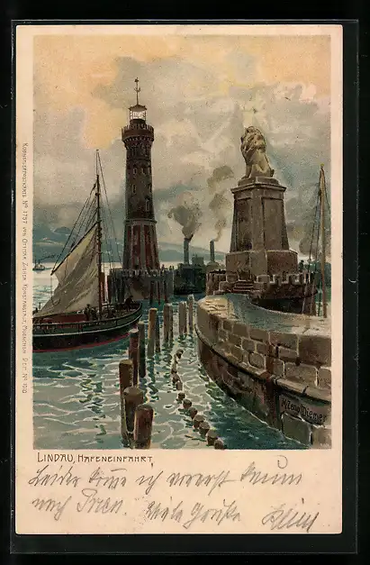 Künstler-AK Zeno Diemer: Lindau im Bodensee, Dampfer und Segelschiff