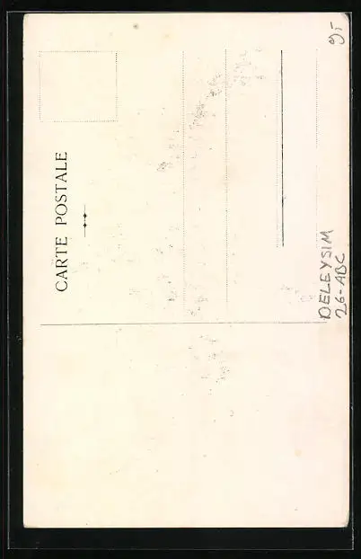 Personenbezogene Daten auf der Rückseite der Karte wurden durch blauen Textmarker unkenntlich gemacht. Die blauen Stellen sind auf die Vorderseite durchgeweicht und wirken sich negativ auf das Postkartenfoto aus