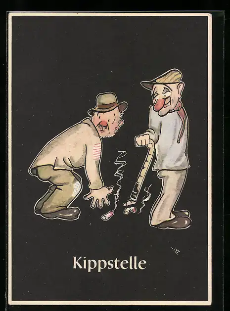 Künstler-AK sign. H. Moritz: 48 bergmännische Begriffe karikiert, aus Lustige Gezähekiste, Bild 1: Kippstelle