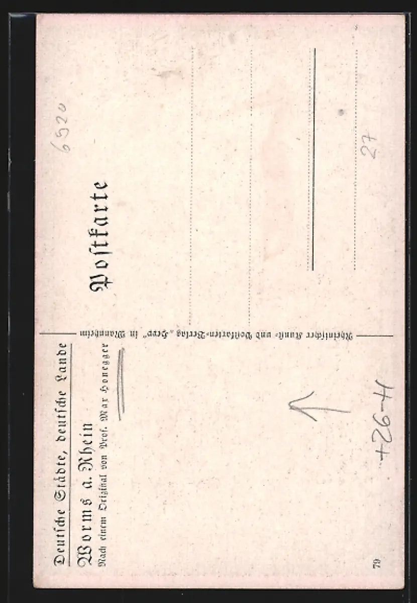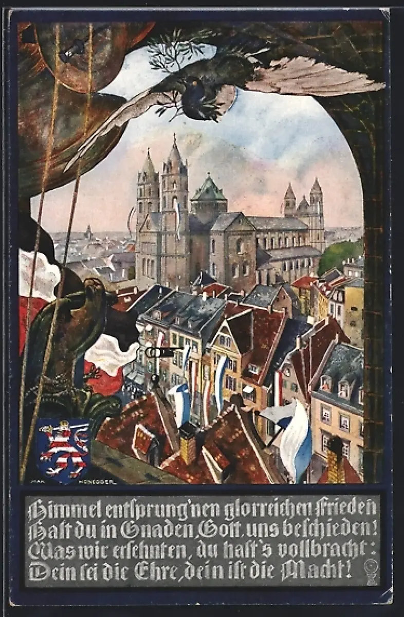 Künstler-AK sign. Max Honegger: Worms, Blick zur Kirche mit Vogel