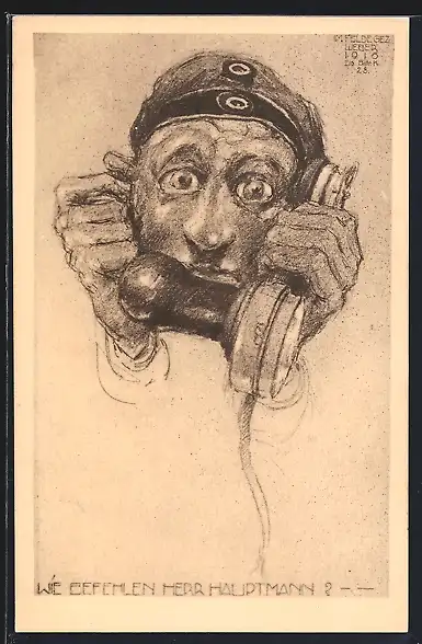 Künstler-AK sign. Weber: Verwirrter Soldat am Telefon