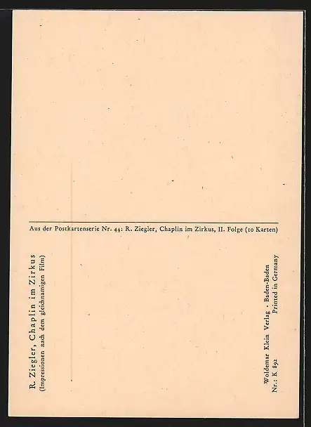 Künstler-AK sign.Charlie Chaplin: Nr. K 892, II. Folge, Chaplin im Zirkus