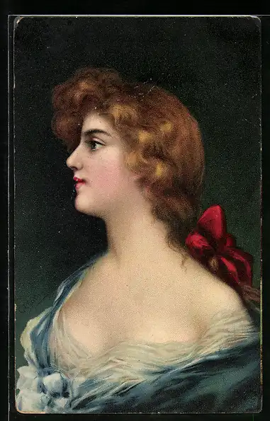 Künstler-AK sign.Collin: junge Dame mit Schleife im Haar