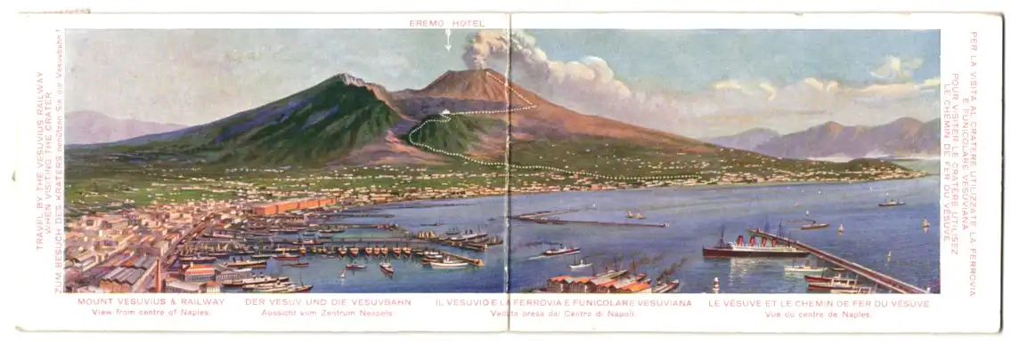 Künstler-Klapp-AK Naples, Mount Vesuvius and Railway