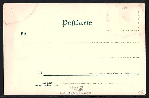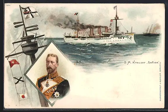 Künstler-Lithographie A. Heide: SM Kreuzer Gefion, Ostasiengeschwader, Prinz Heinrich