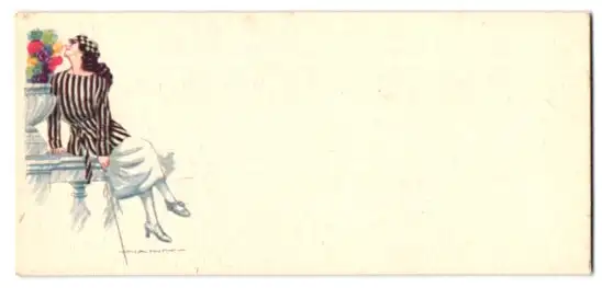 Künstler-Mini-AK Nanni: Dame riecht an bunten Blumen